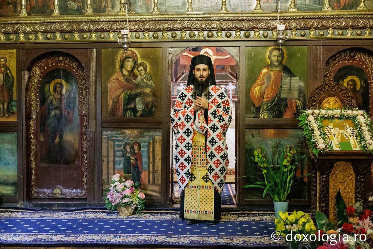 Sfânta Liturghie a fost săvârșită de Înaltpreasfinţitul Părinte Teofan, Mitropolitul Moldovei și Bucovinei, înconjurat de un sobor de preoți și diaconi.